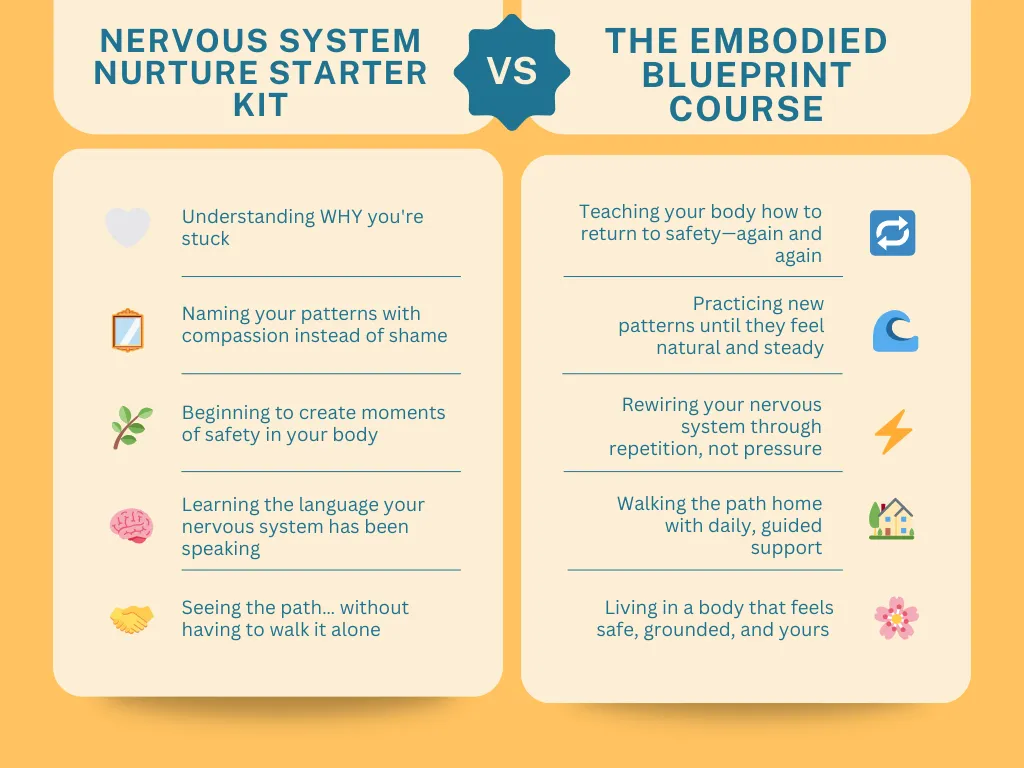 The Embodied Blueprint is an educational program designed to support nervous system healing through somatic and attachment-based approaches.